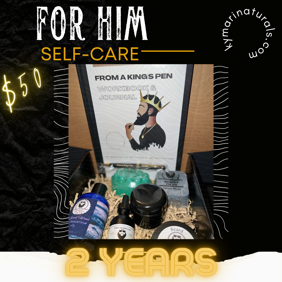 “Unleash the power of self-care with our premium Men’s Essentials Bundle. Elevate your grooming routine with our coveted Beard Oil and Conditioning Beard Balm for a well-groomed, masculine look. Indulge in the invigorating scents of our Hemp/Eucalyptus Massaging Soap Bar and All-Natural Shower Bar. Embrace freshness with Mr. Good Wood Male Body Wash, followed by the luxurious touch of our Body Butter. Plus, dive into self-reflection with ‘From A King’s Pen’ Journal/Workbook with Pen. Elevate your self-care journey with this all-inclusive bundle designed for kings.”